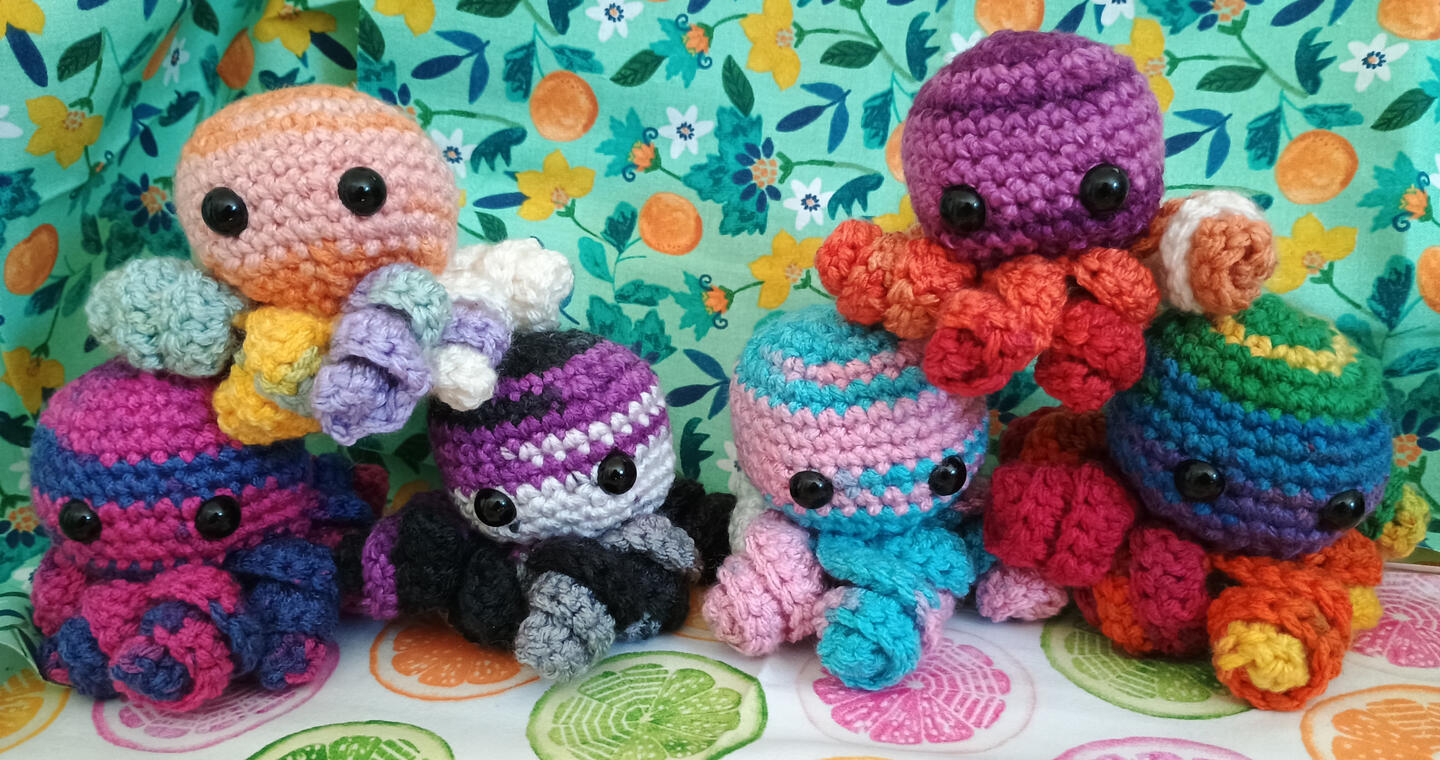 Handcrafted crochet in all shapes and forms! Many of these friends can be found on my Etsy or on my Ko-Fi Shop if you'd like to adopt one.