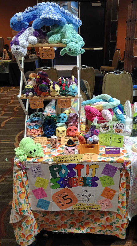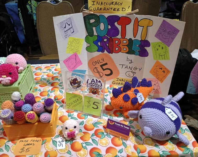Constantly buried in yarn in an attempt to make all the treats in the world, Tangy can be spotted crocheting until their hands fall off.They also enjoy drawing, writing, and spends way too much time playing video games when not working on treats for others.